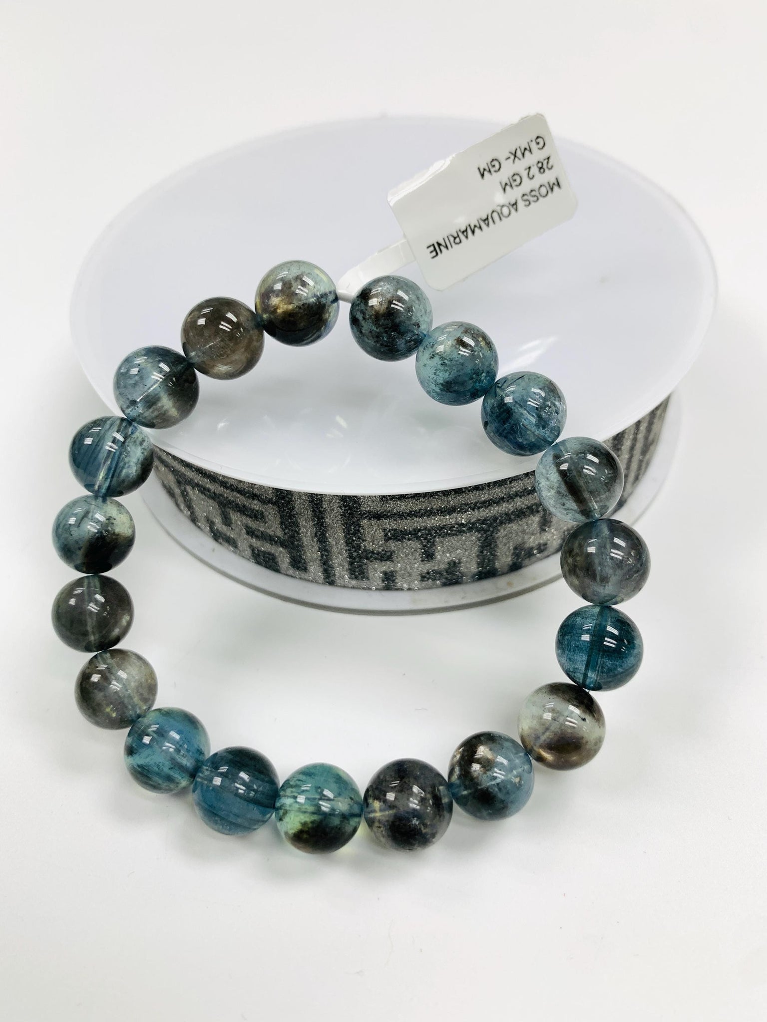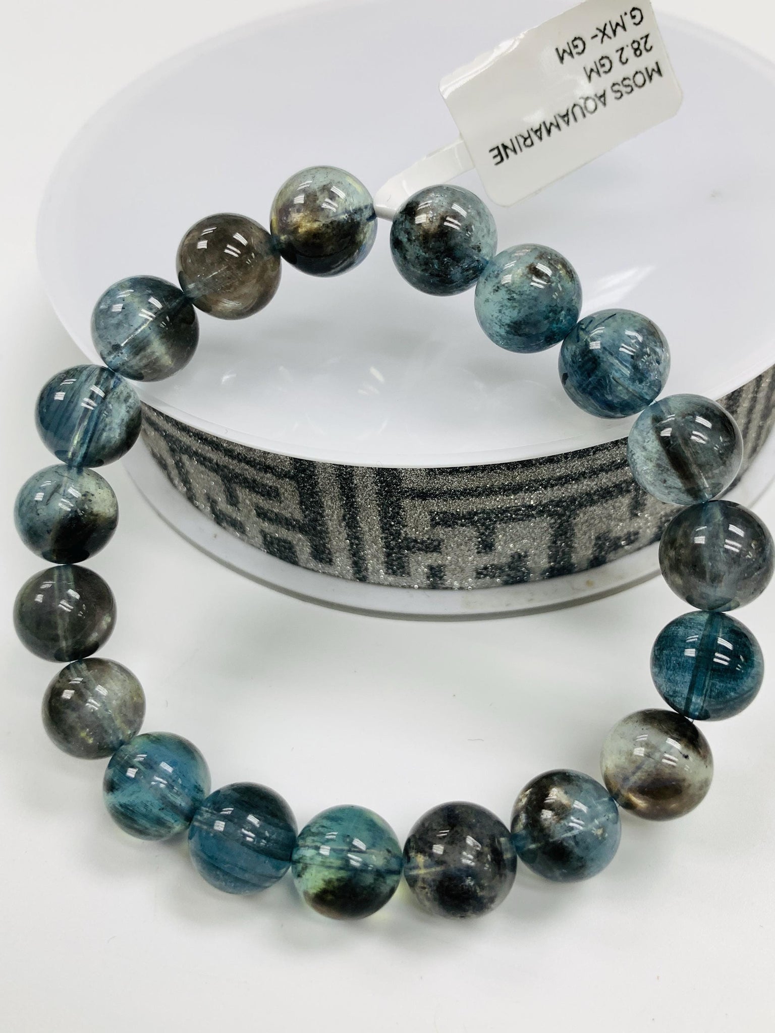 Moss Aquamarine Bracelet • 10 mm Size • Code M17 • AAAA Quality • Natural Aquamarine Round Bracelet