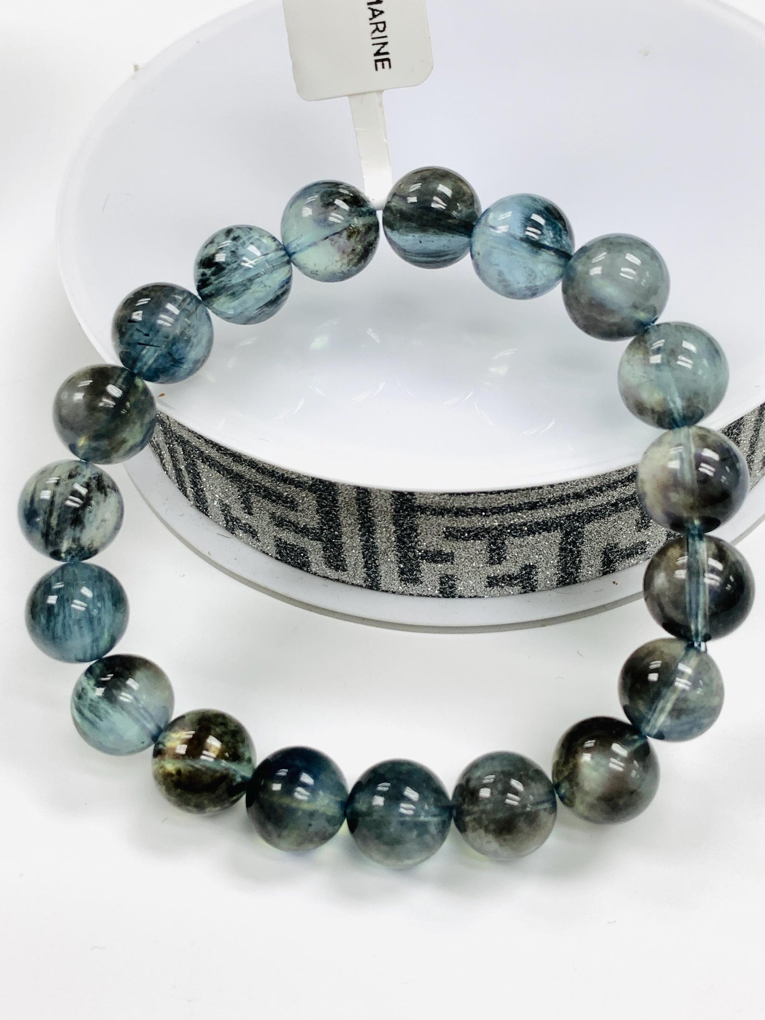 Moss Aquamarine Bracelet • 10.5 mm Size • Code M20 • AAAA Quality • Natural Aquamarine Round Bracelet
