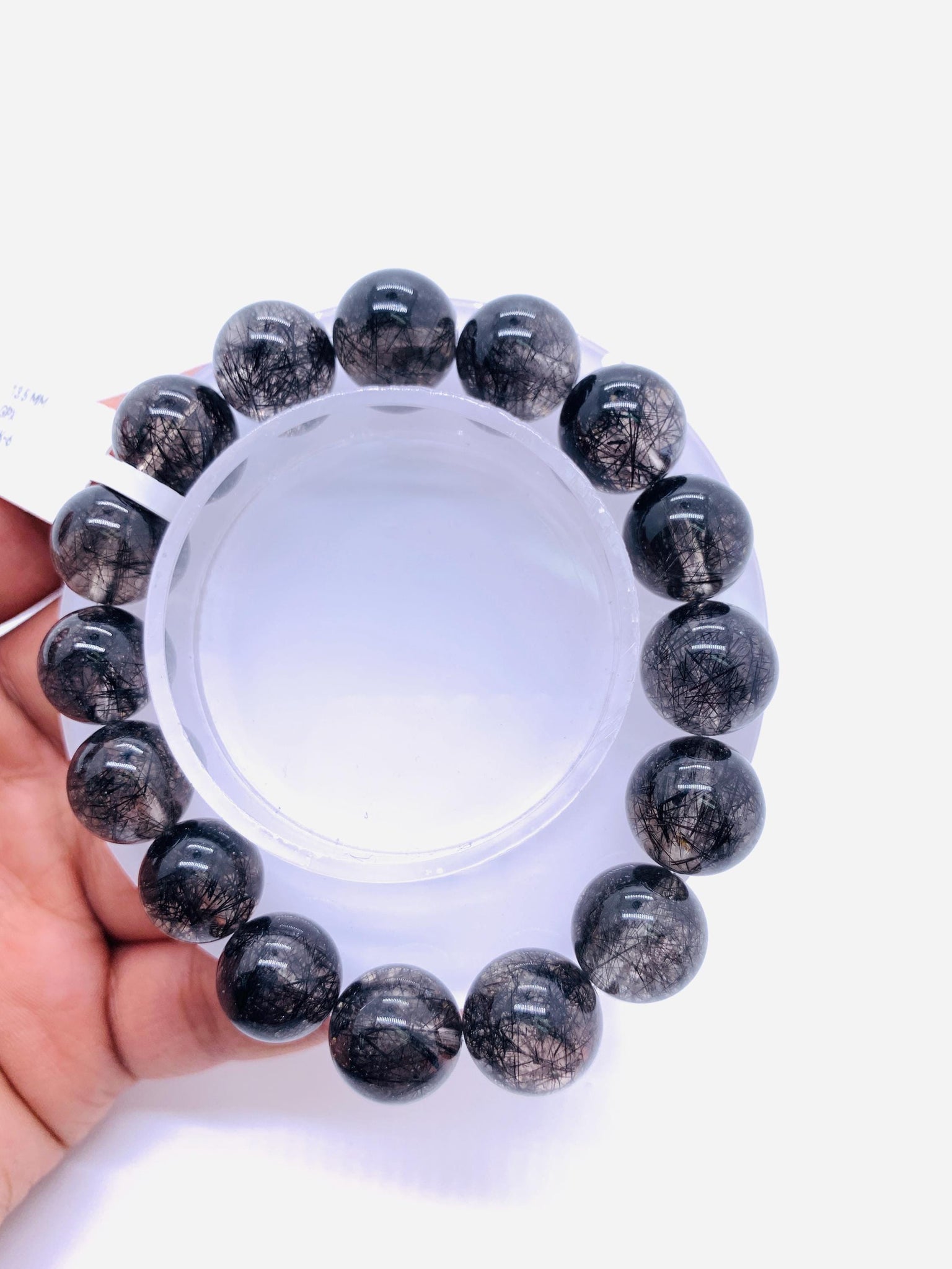 Black Rutile Bracelet 13.5 mm Size • Code #Bk6 • AAA Quality • Natural Rutilated Quartz • Rutile Round Beads Bracelet