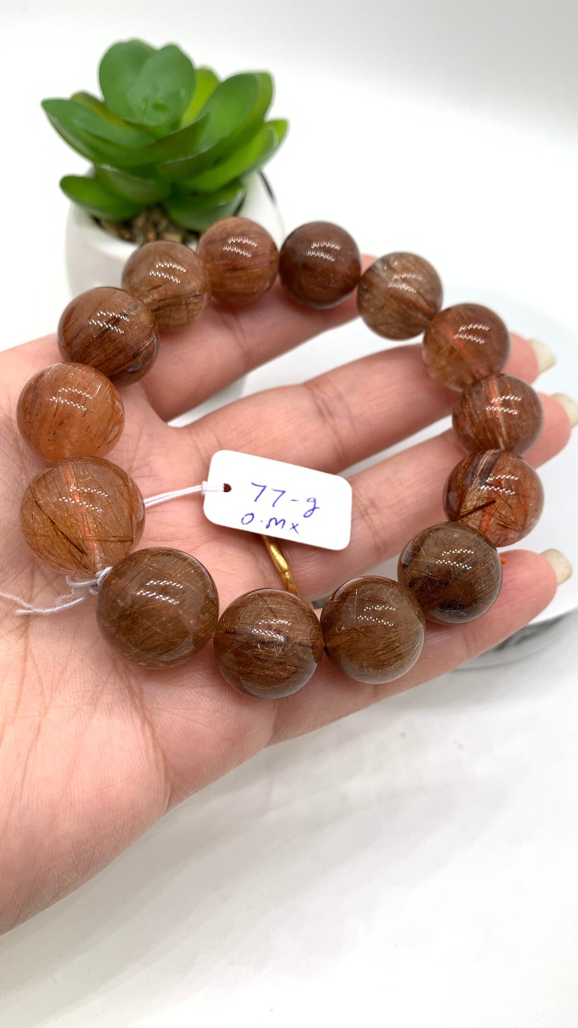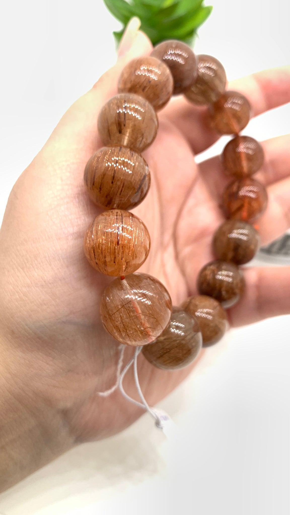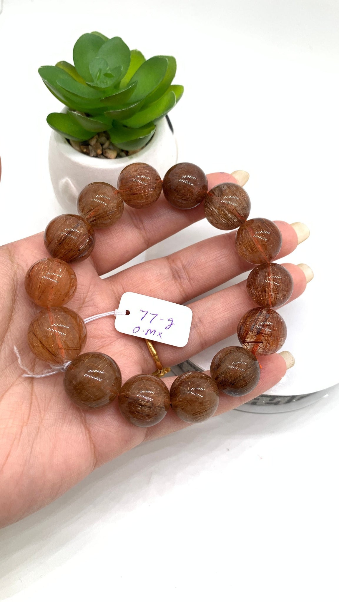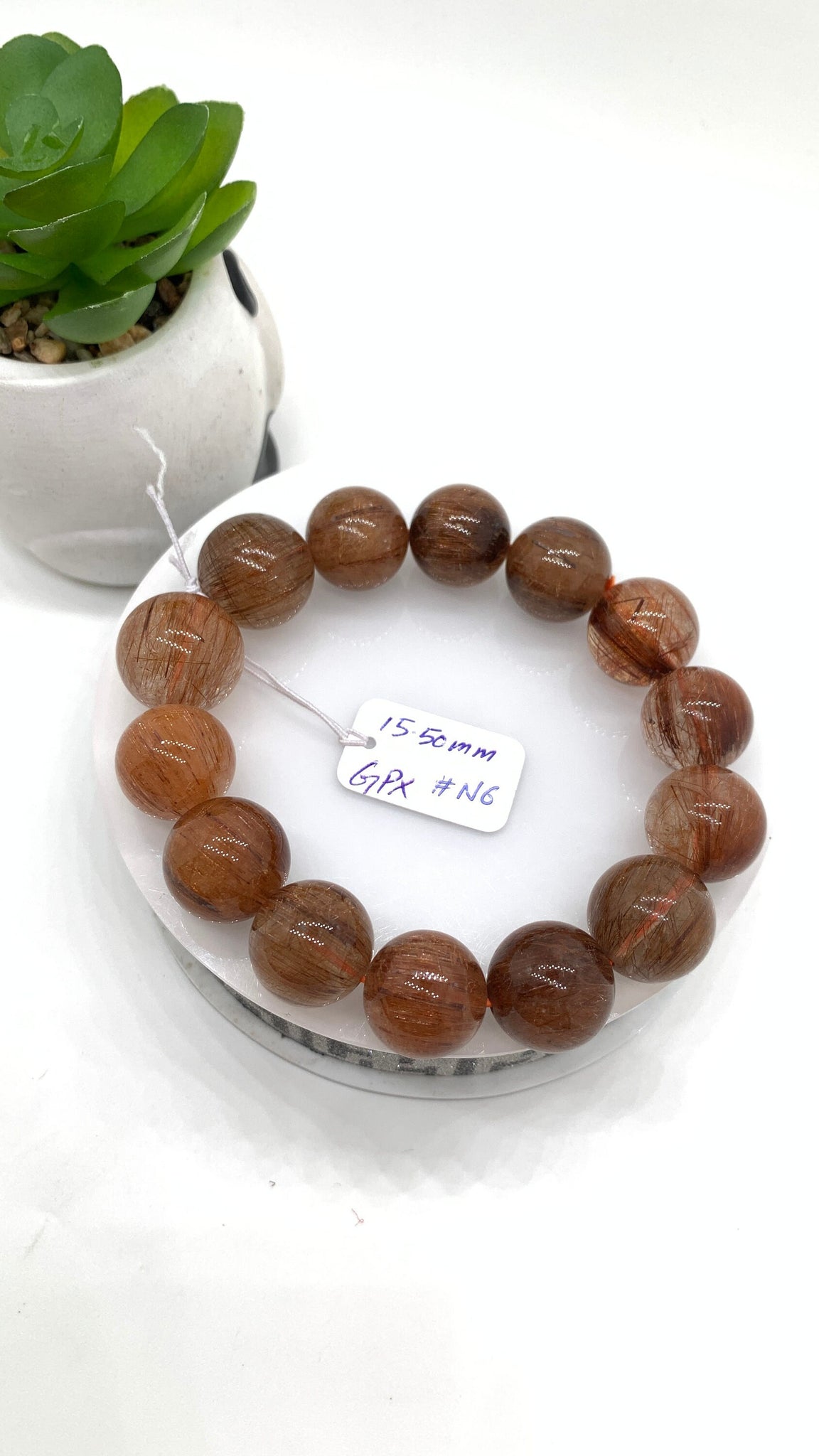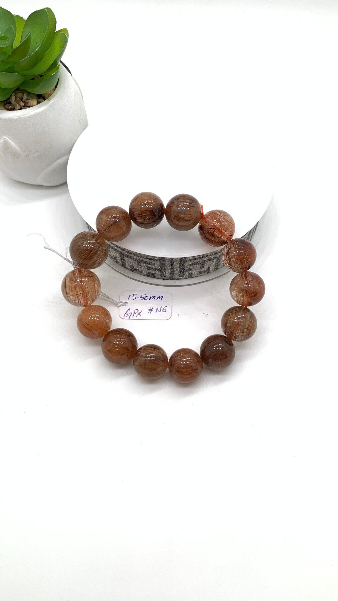 Copper Rutile Round Bracelet • 15.50 mm Size • Code N6 • AAA Quality • Natural Rutilated Quartz Bracelet • Length 7 "