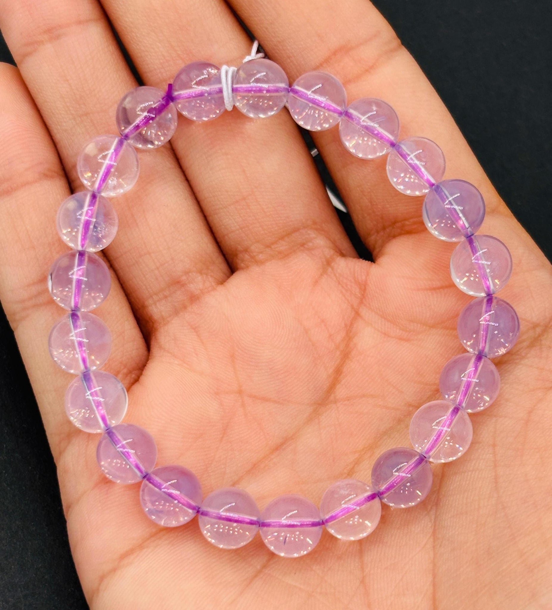 Lavender Quartz Bracelet 8 mm Size, AAA Quality- 7.5'' Length-code 0.MX- Natural Lavender Quartz Round Bracelet. origin Brazil. weight 18-GM