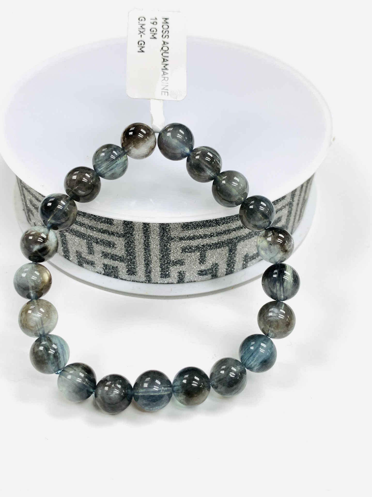 Moss Aquamarine Bracelet • 8.80 mm Size • Code M8 • AAAA Quality • Natural Aquamarine Round Bracelet