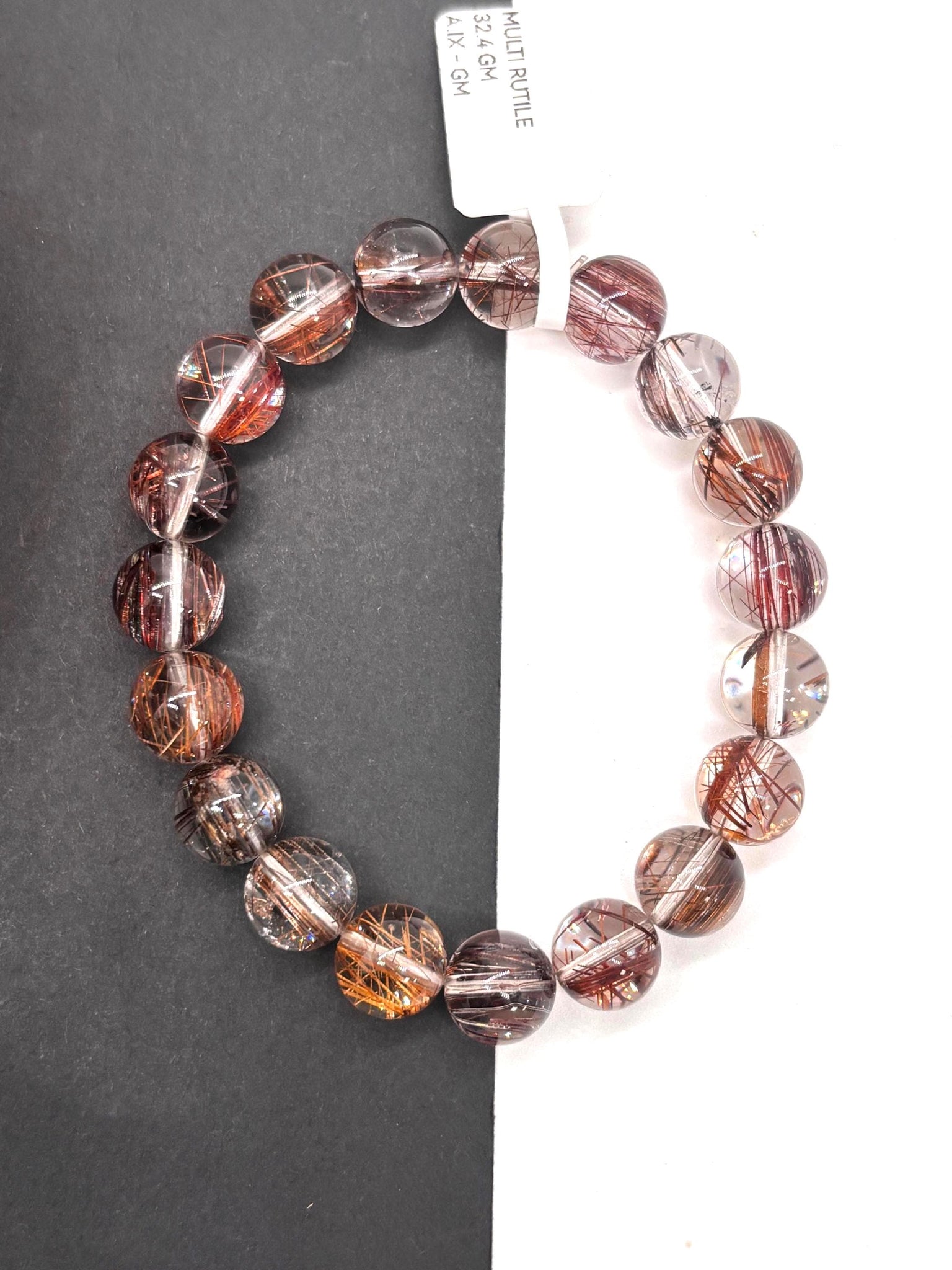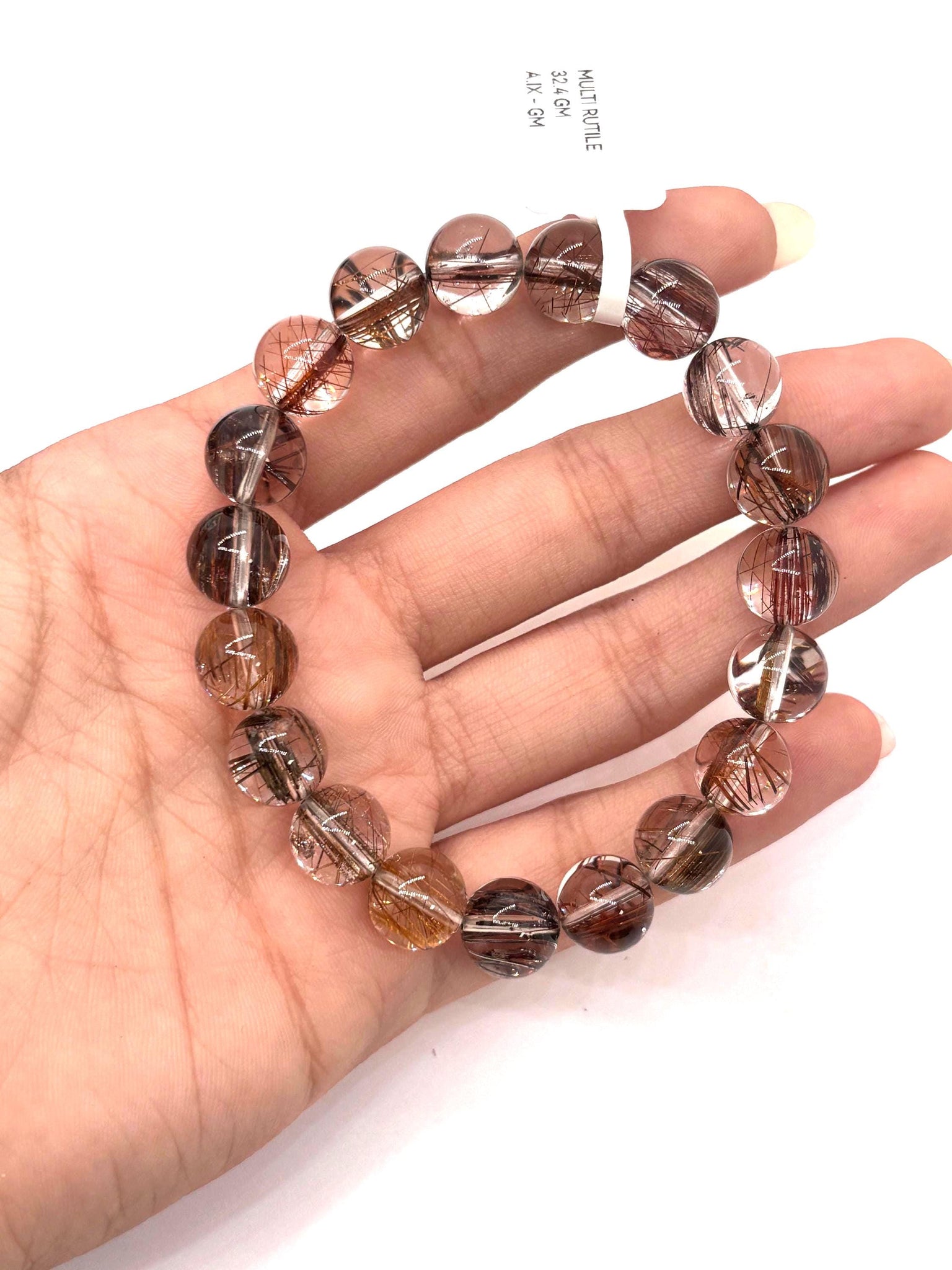 Multi Rutile Bracelet • 10.50 mm Size • Code #M8• AAA Quality •Weight 32.4 gm. Natural Rutilated Quartz Bracelet