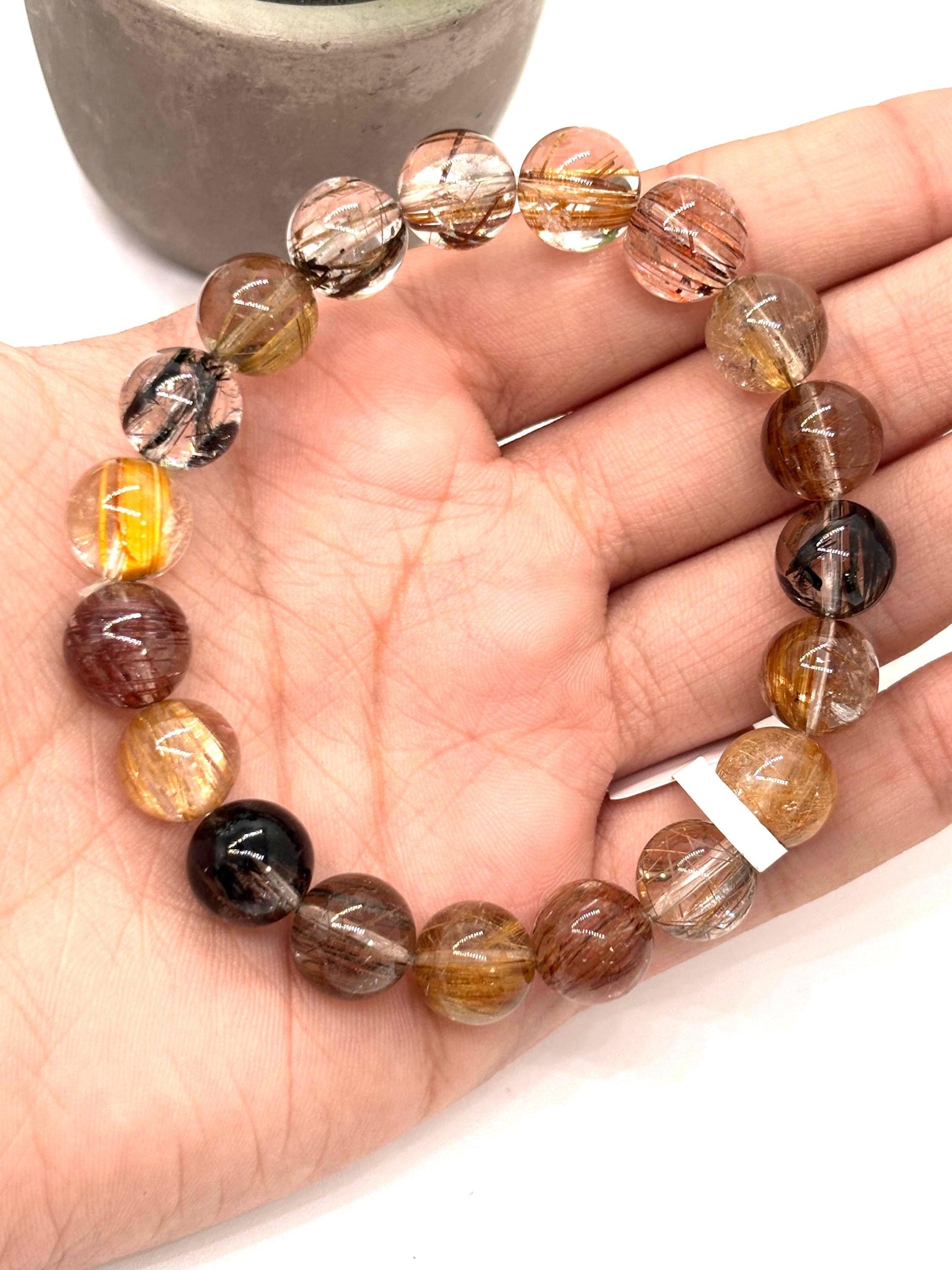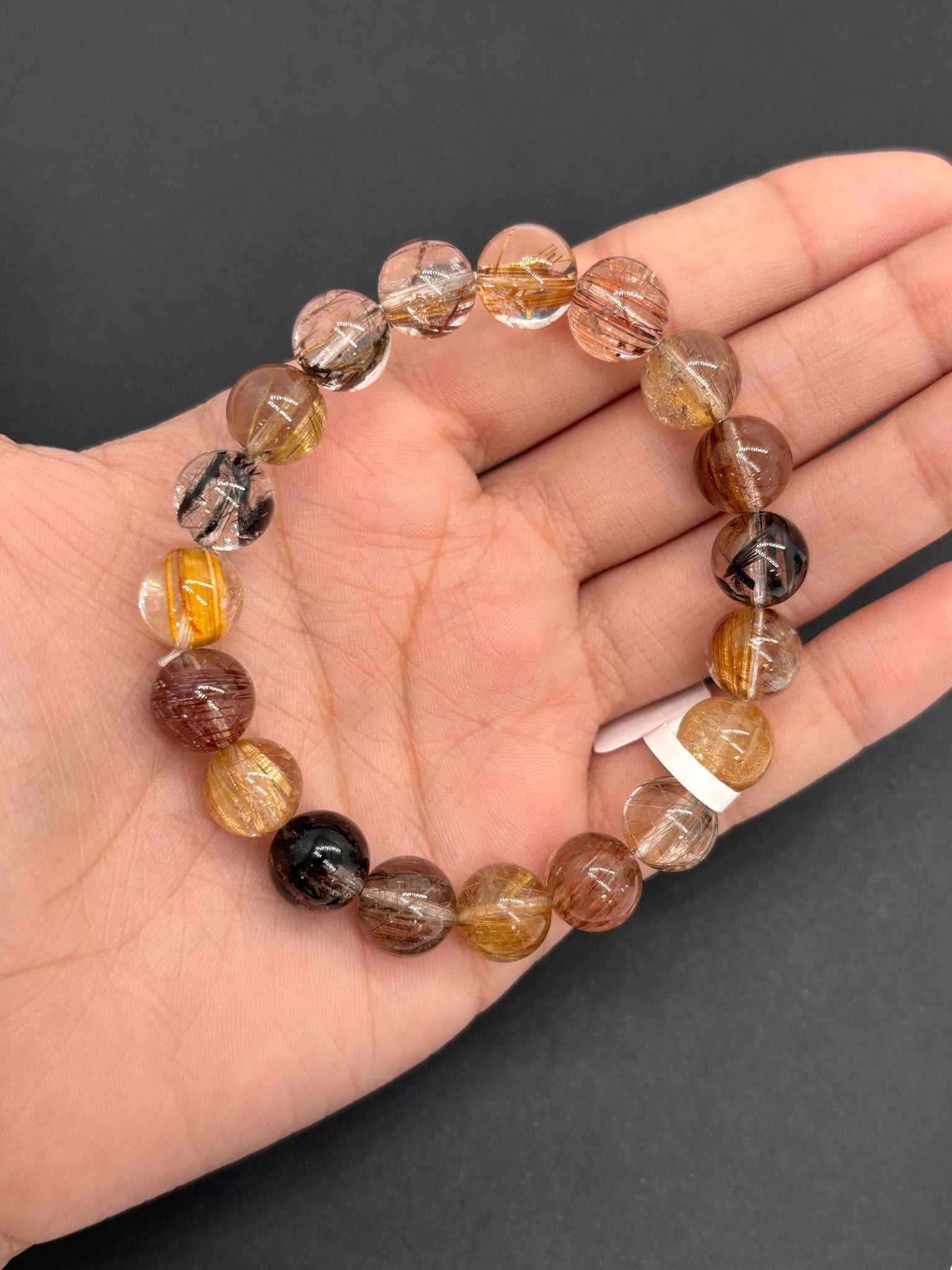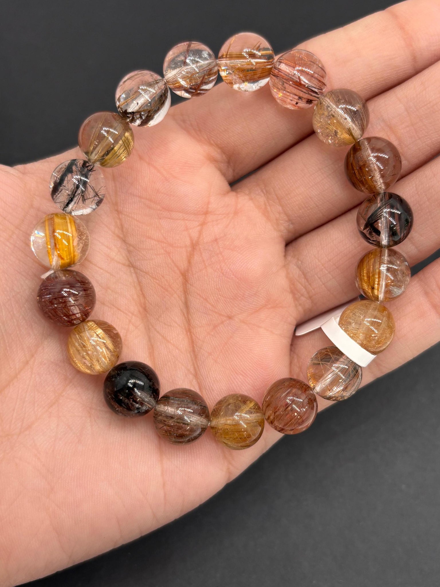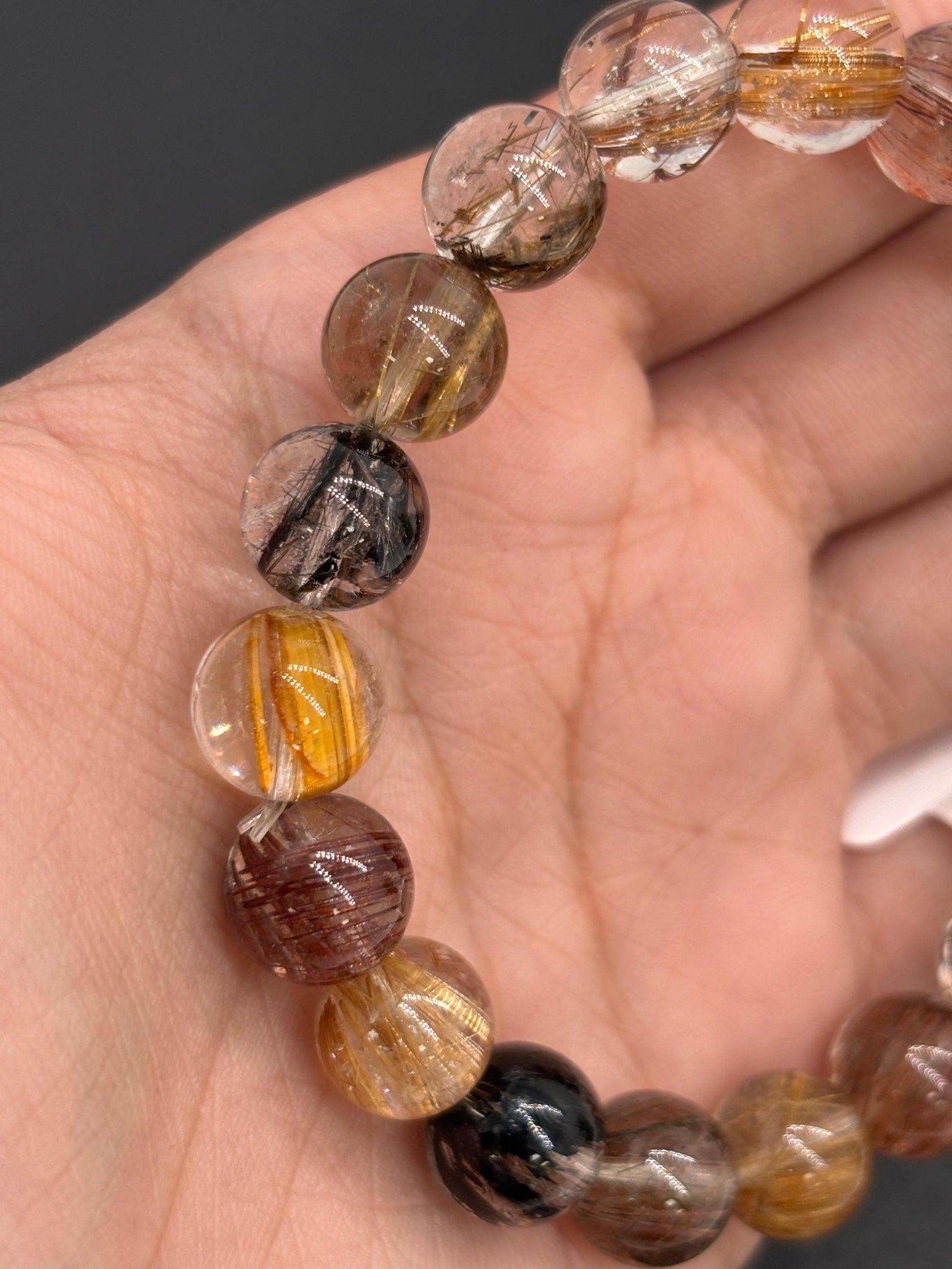 Multi Rutile Bracelet • 10.80 mm Size • Code #M9• AAA Quality •Weight 32.2 gm. Natural Rutilated Quartz Bracelet