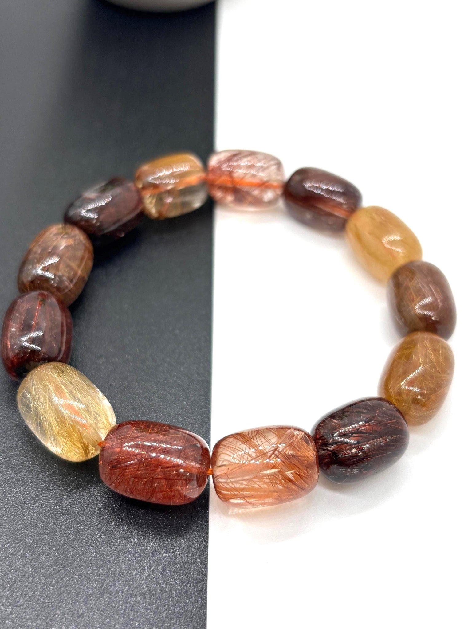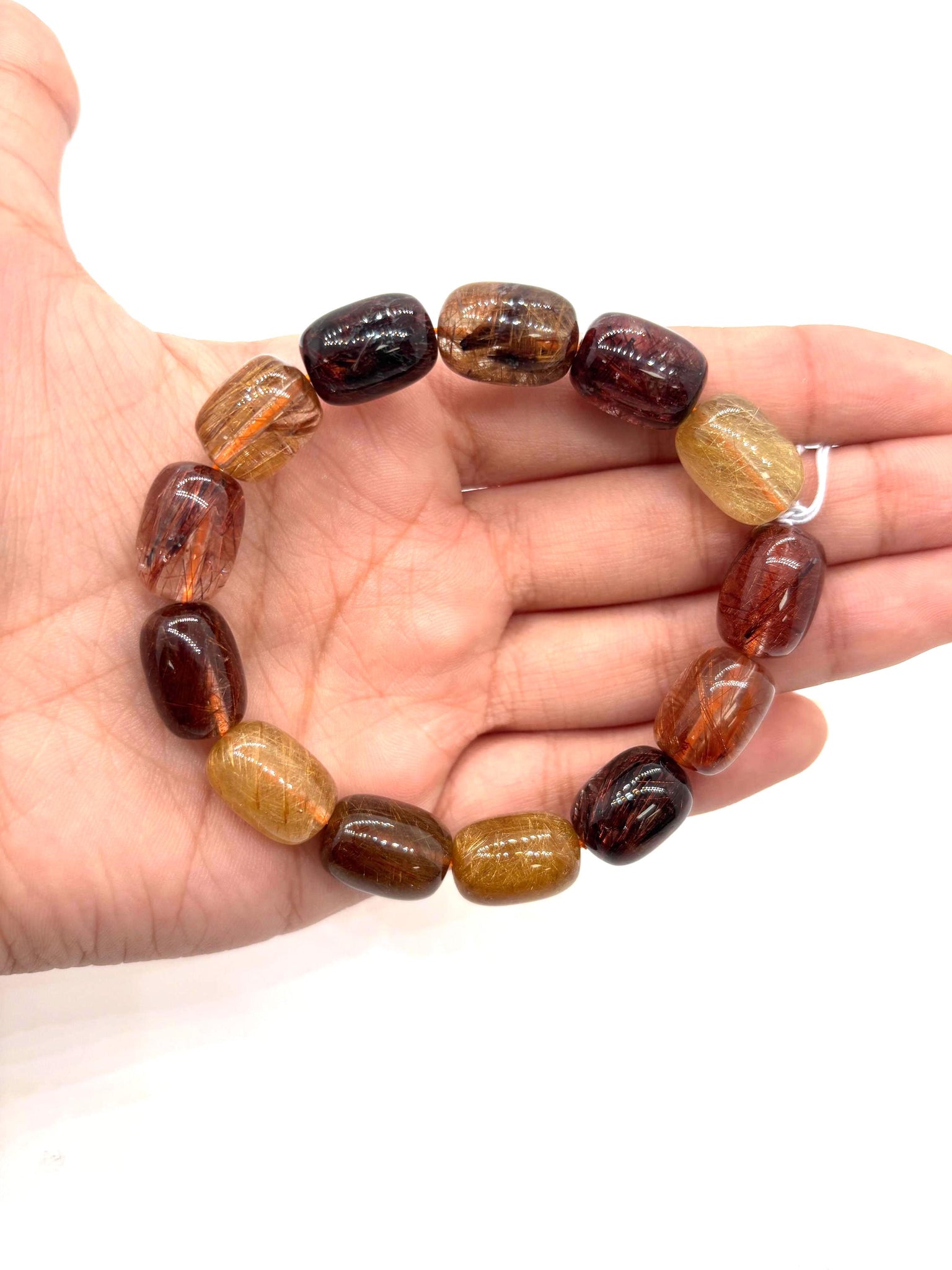 Multi Rutile Bracelet •11x15 mm Size • Code #D4• AAA Quality •Weight 42 gm. Natural Rutilated Quartz Bracelet