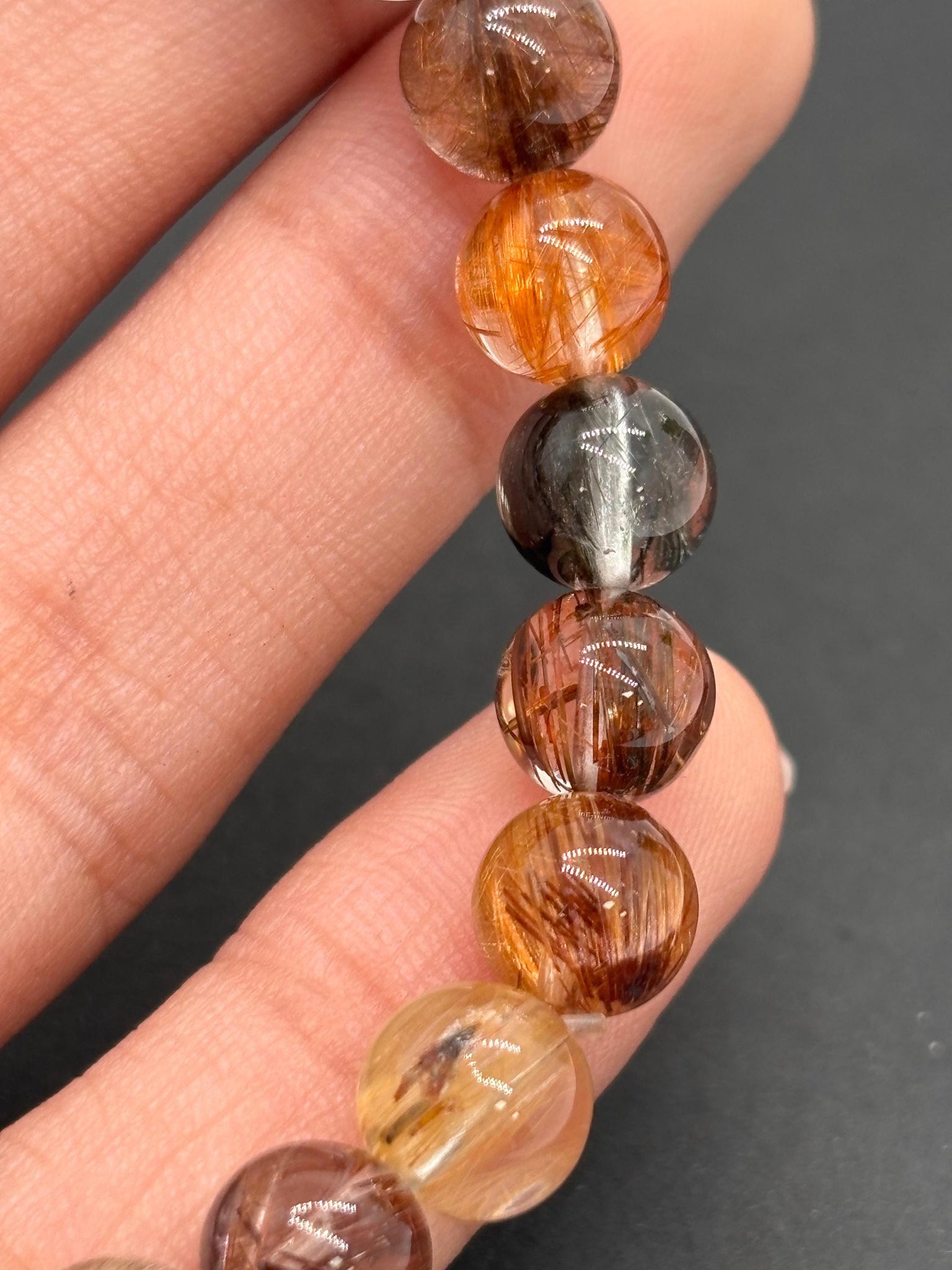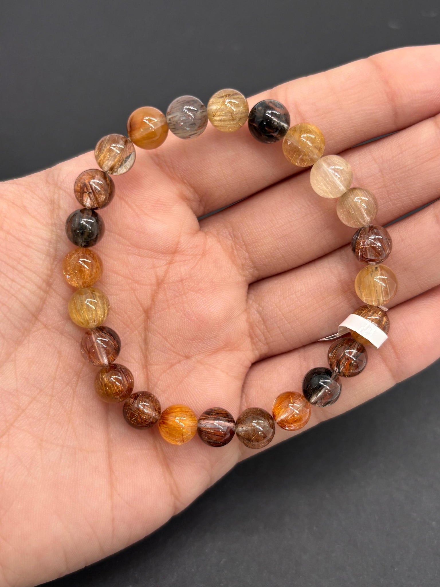 Multi Rutile Bracelet • 8 mm Size • Code #M2• AAA Quality •Weight 15.3 gm. Natural Rutilated Quartz Bracelet