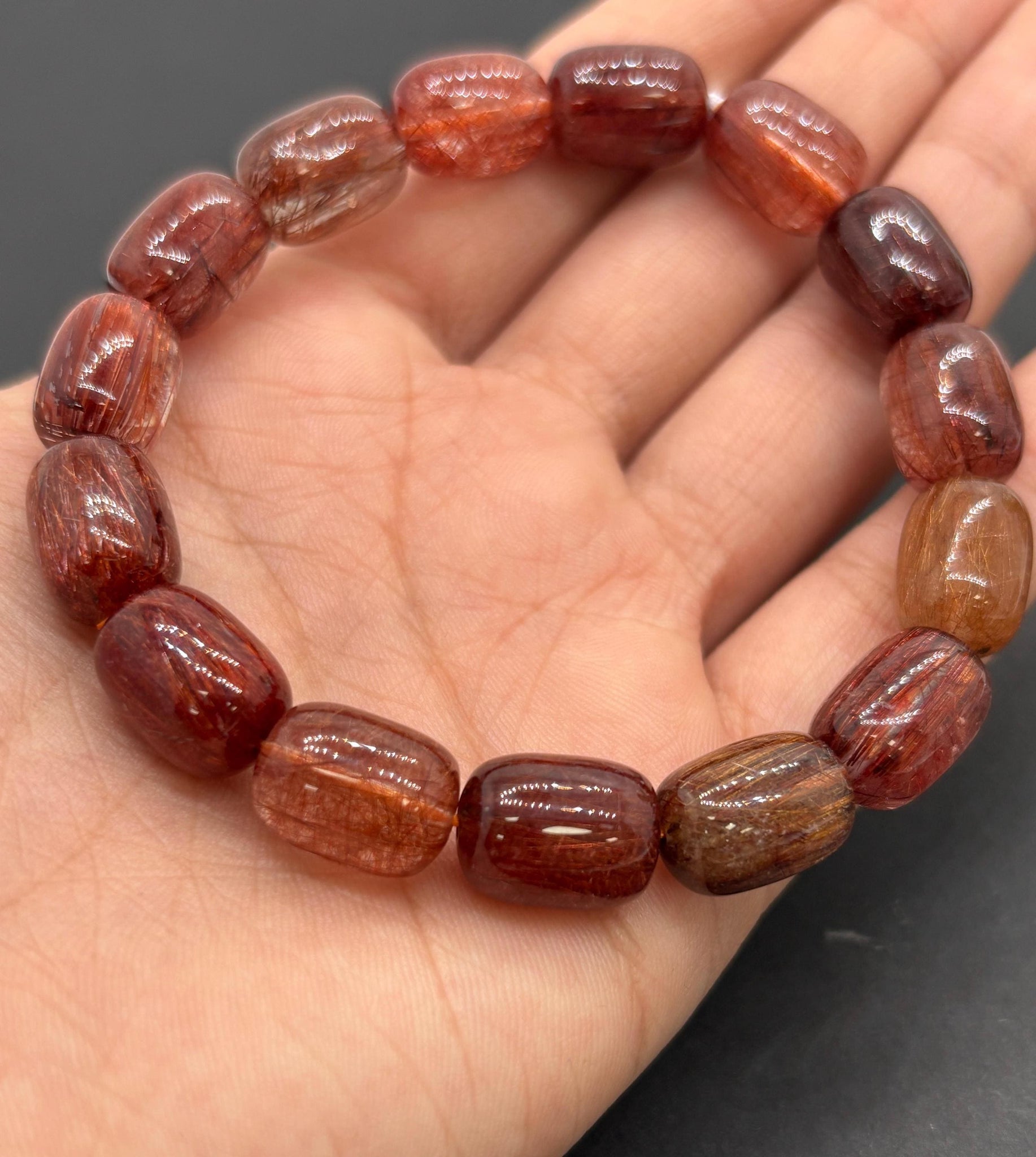 Red Rutile Bracelet •10x13 mm Size • Code #D5• AAA Quality •Weight 35 gm. Natural Rutilated Quartz Bracelet