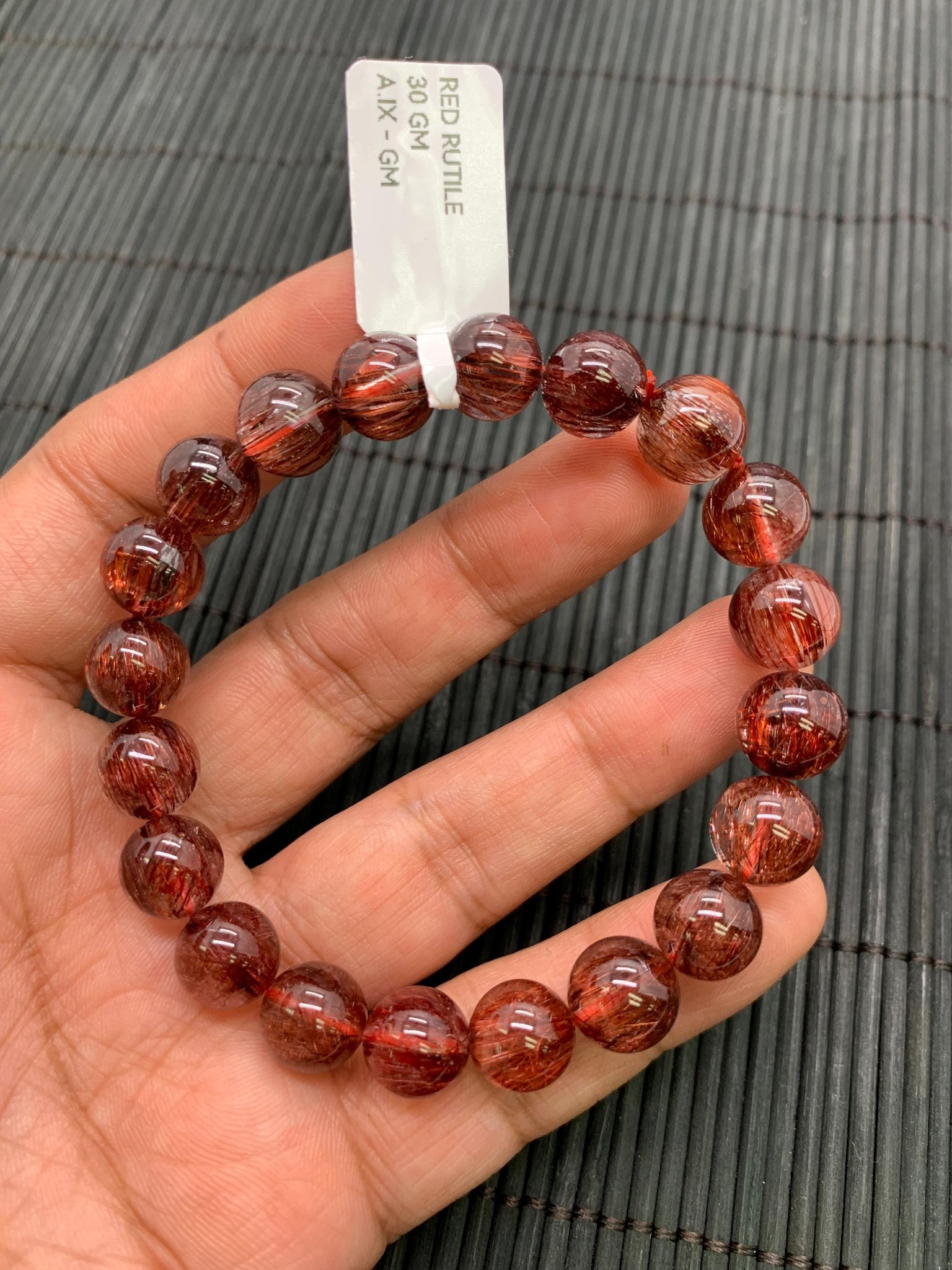 Red Rutile Round Bracelet • 10 mm Size • Code #A12 • AAA Quality • Natural Rutilated Quartz Bracelet