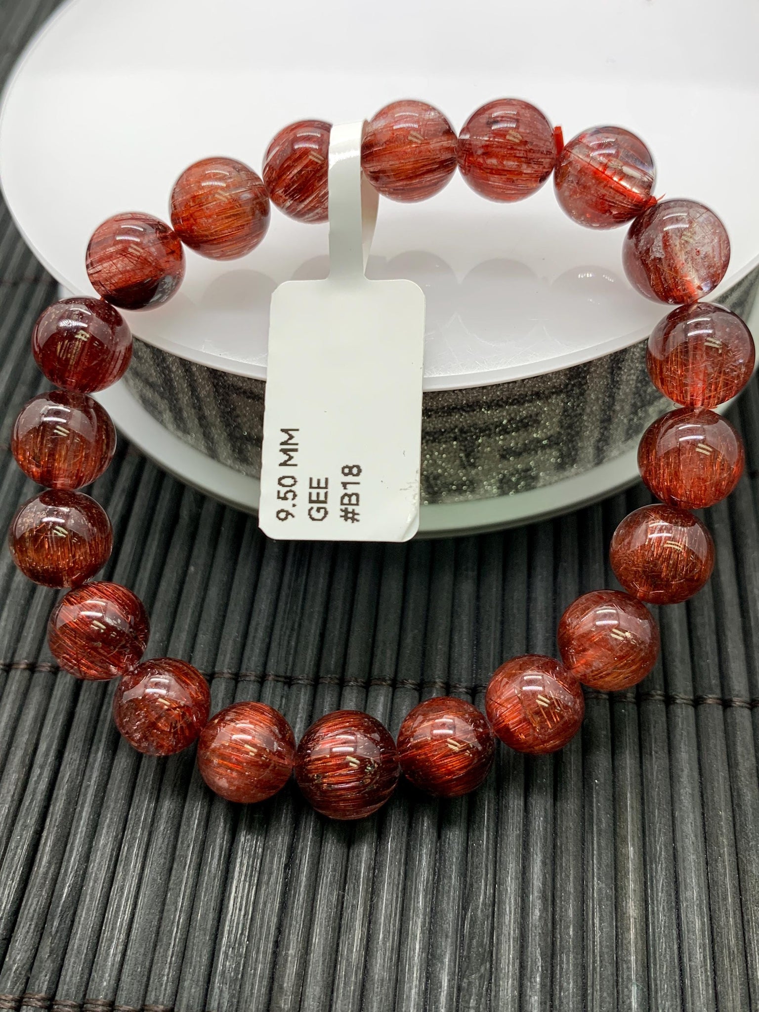 Red Rutile Round Bracelet • 9.50 mm Size • Code #B18 • AA Quality • Natural Rutilated Quartz Bracelet