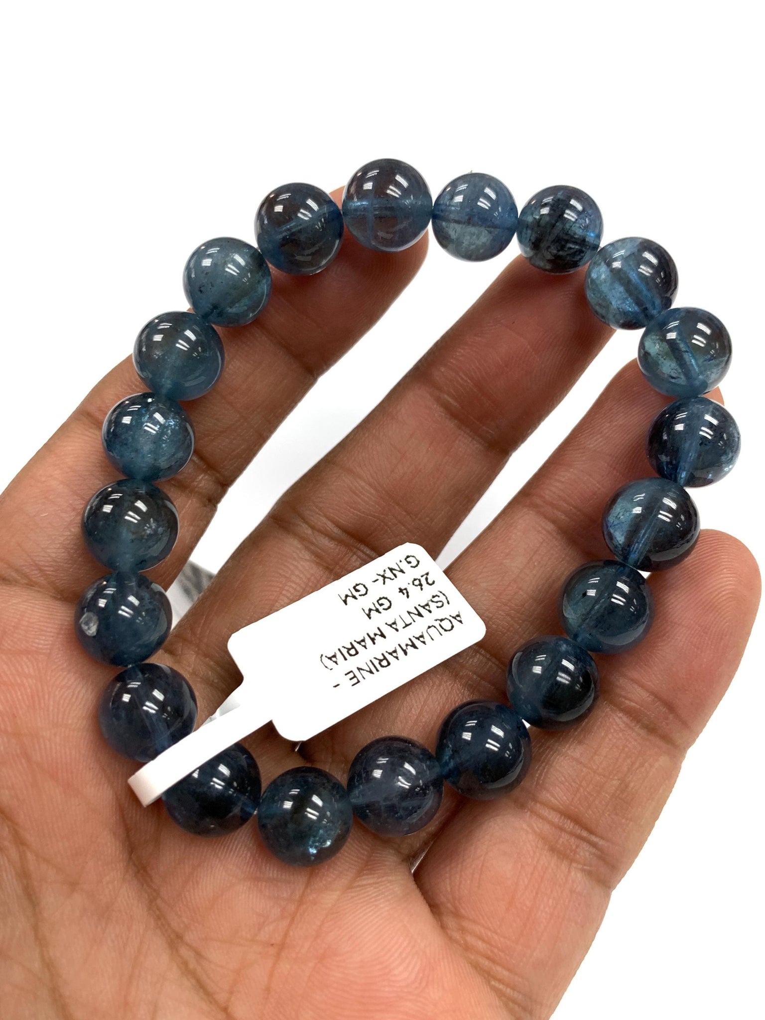 Santa Maria Aquamarine Bracelet • 10 mm Size • Code B10 • AAA Quality • Natural Aquamarine Round Bracelet