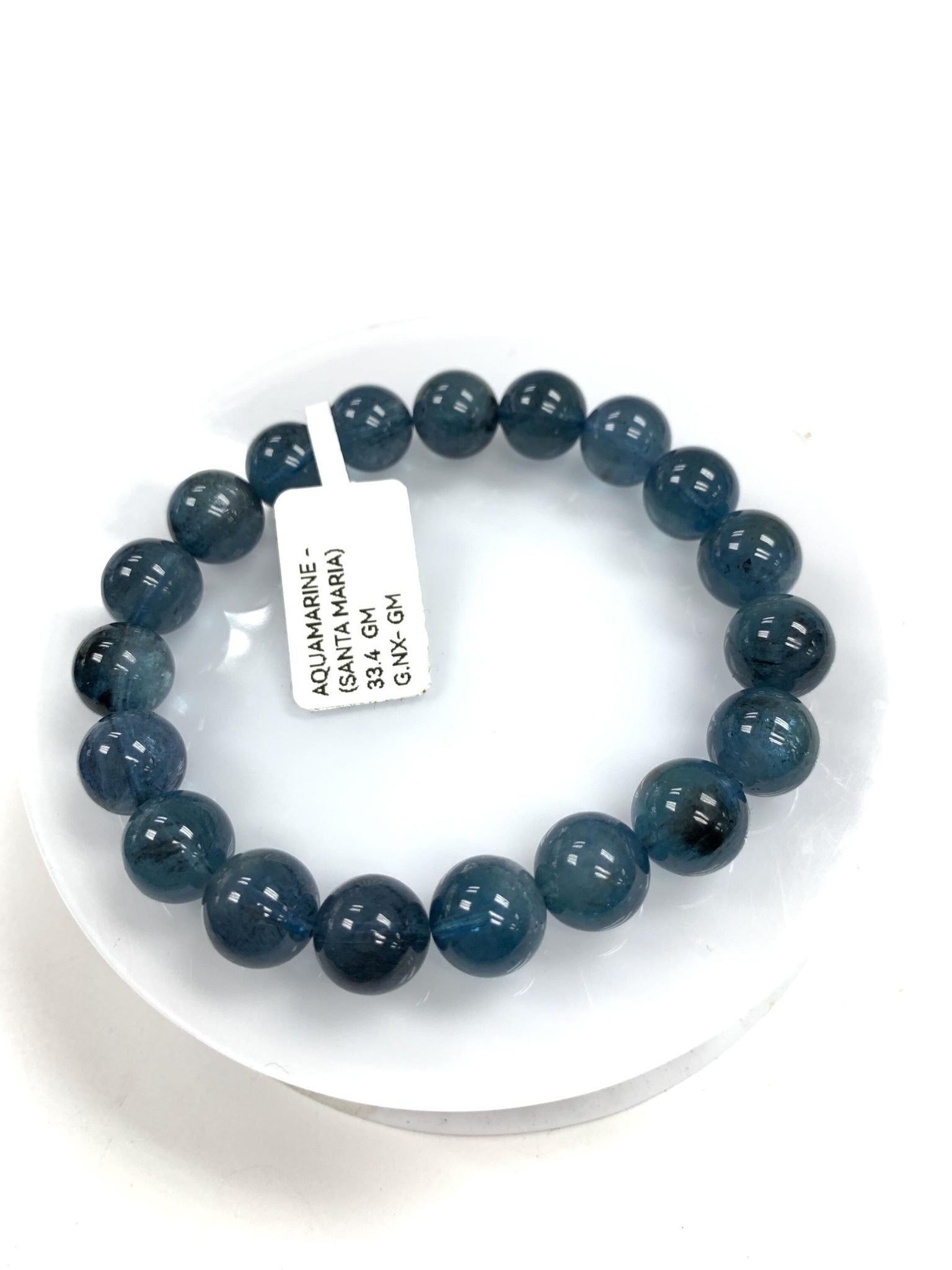 Santa Maria Aquamarine Bracelet • 10.5 mm Size • Code B14 • AAA Quality • Natural Aquamarine Round Bracelet