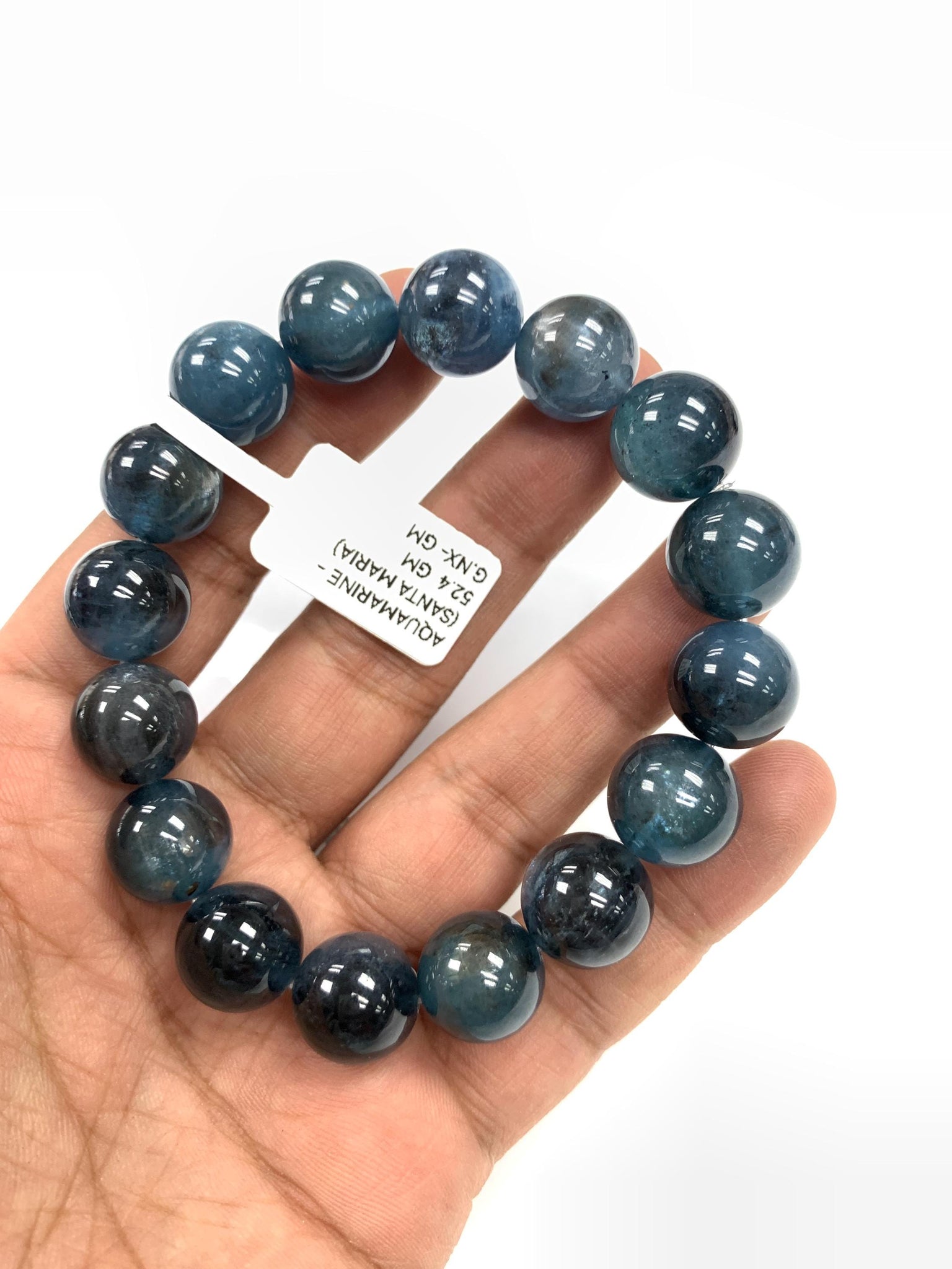Santa Maria Aquamarine Bracelet • 13 mm Size • Code B15 • AAA Quality • Natural Aquamarine Round Bracelet